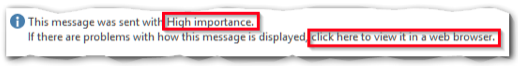 The Checkup Report is embedded directly in the email sent to recipients and marked with “High Importance” when a problem needing attention is indicated. The tables shown in the message are static (not sortable), but you can view the Checkup Report in a browser to enable dynamic sorting of columns which is useful when exploring the report in more detail. The message below was displayed in a Checkup Report email received in an Outlook 2013 client.
