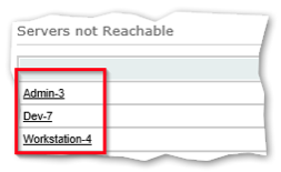 The Servers not Reachable section is a short list of servers that are configured, but not reachable during checkup report generation and do not have any plan results within the last 24 hours. These may need immediate attention.