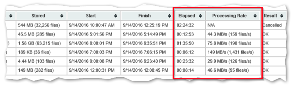 For each plan executed in the last 24 hours, total runtime is now shown in the Protection Plan Summary table under the Elapsed column. This is used for identifying plans that are running unusually long or even too quickly (e.g. doing less work that expected)