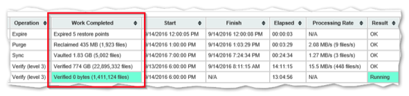To help better understand the progress of various Store tasks listed in the Operation column, the Work Completed column includes a result summary. Review this section to confirm the various Store maintenance tasks are running against their expected workload.